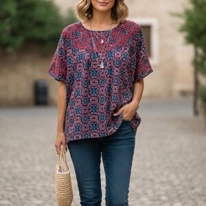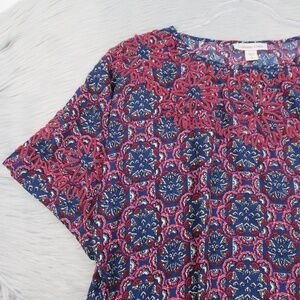 COLDWATER CREEK Embroidered Scoop Neck Printed Tee Women's Size Large