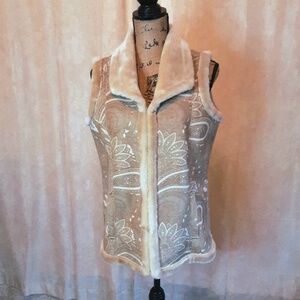 COLDWATER CREEK Faux Suede & Fur Embossed Vest S