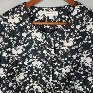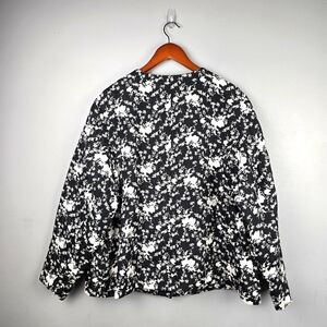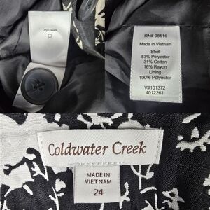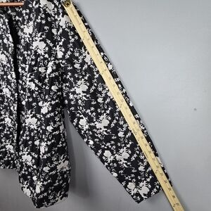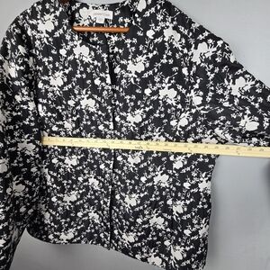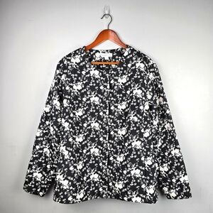 COLDWATER CREEK Floral Structured Jacket Blazer Crew Neck Black White Womens 24