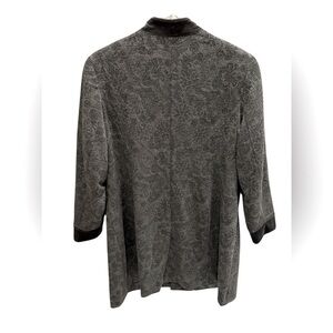 COLDWATER CREEK Gray Floral Paisley Duster Coat Long Velvet Trim Jacket Size 18W