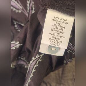 COLDWATER CREEK L Brown SILK Blend 3/4 Sleeve Lightweight Dress Metalic Embroidered Hem