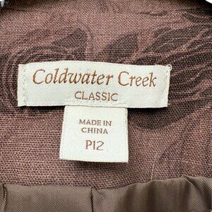 COLDWATER CREEK Linen Blend Blazer 12 Petite Womens Plum Floral Jacket Boho Arts