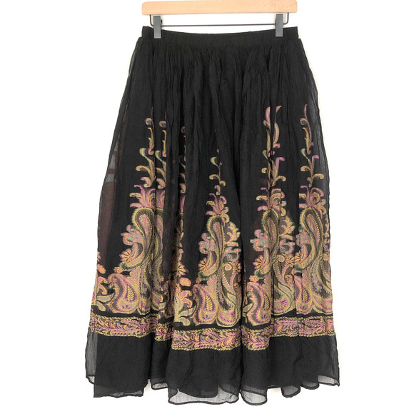 COLDWATER CREEK Midi Skirt Sz S Black Sheer Layered Paisley Whimsigoth Vamp EUC