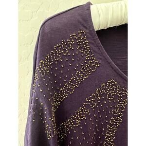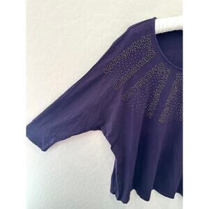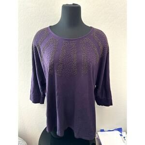 COLDWATER CREEK | Purple Beaded Embellished Dolman Sleeve Top 100% Cotton | XL