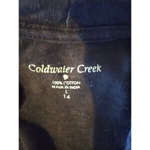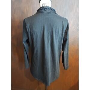 COLDWATER CREEK Size Large Open Cardigan Black Ruffle 3/4 Sleeve Sweater Top