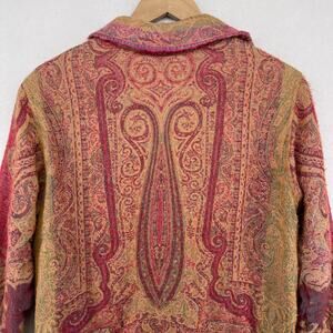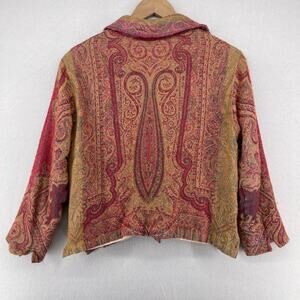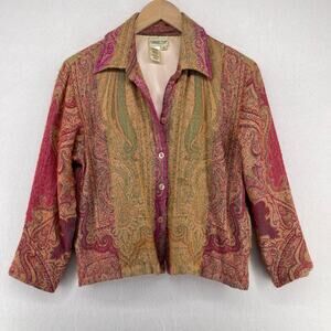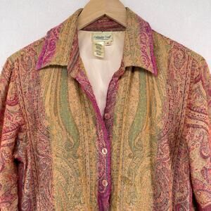 COLDWATER CREEK Top S Wool Silk Tweed Bandana Tapestry Button Front Pink VTG