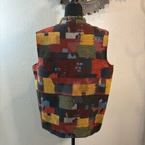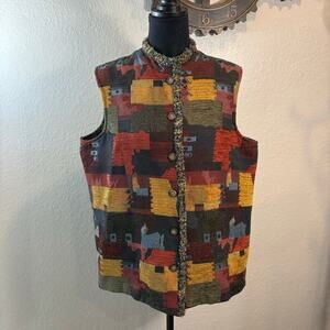 COLDWATER CREEK Vest Patchwork Sz L Eclectic Western Equestrian Folk Artsy Ranch