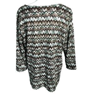 COLDWATER CREEK Women's 2X Aqua Blue Brown Crochet Lined Pullover Boho Tunic Top