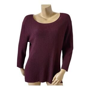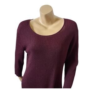 COLDWATER CREEK Womens Plus Size 1X Sparkly Burgundy Ribbed Stretch Knit Shirt