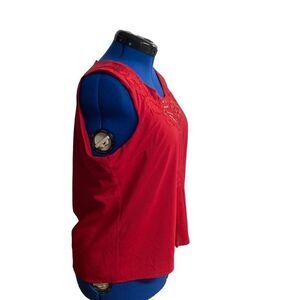 COLDWATER CREEK Women’s Red Top Size Large Embroidered Beaded Ruched Sleeveless