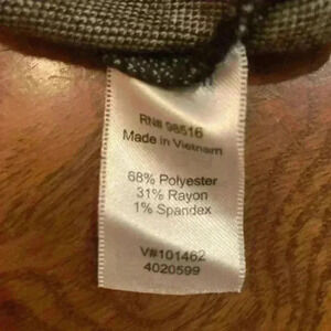 poly/rayon blend with spandex for a good stretch to give a flattering and slimming look
