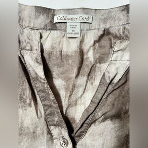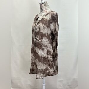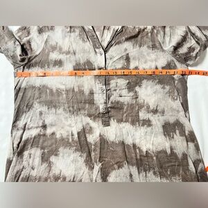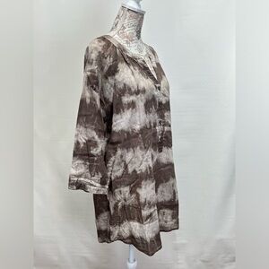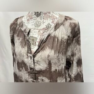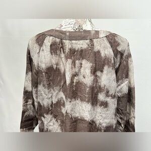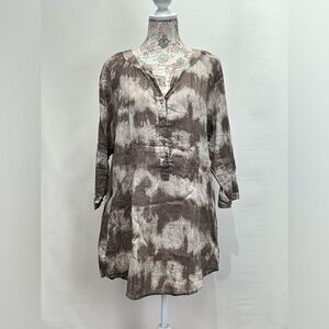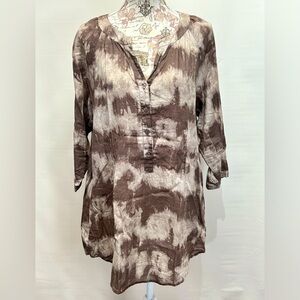 Brown and beige tie dye tunic top from COLDWATER CREEK, size L. Top has button V neckline and 3/4 sleeves.