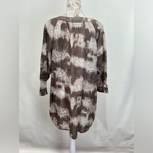 Brown and beige tie dye tunic top from COLDWATER CREEK, size L.  Top has button V neckline and 3/4 sleeves.