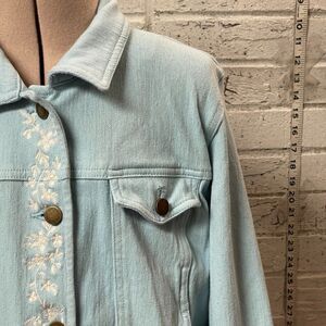 COLDWATER CREEK denim Blue Jean JACKET embroidered Stretch PM