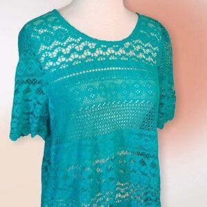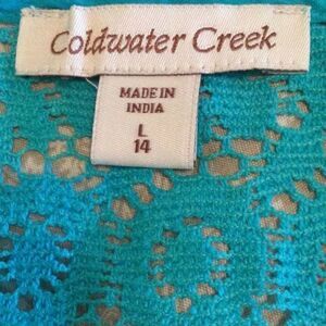 COLDWATER Creek Turquoise Lace Open Weave Swimsuit Cover Tunic L 14