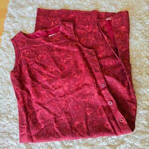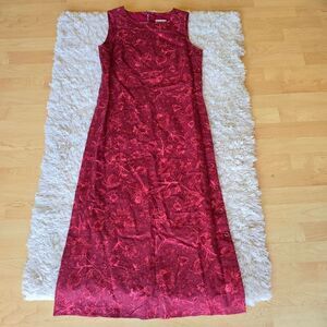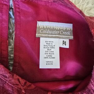 COLDWATER GREEK Womens Maxi Dress Button Down Size P4 Linen Blend Red