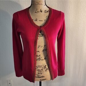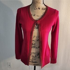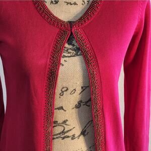 COLDWATER creek silk blend gold beaded cardigan sweater size 4