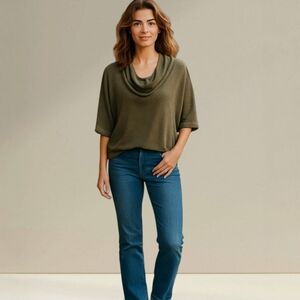 COLDWATER CREEK Women's sage green cowl neck blouse with metallic Shimmer Large