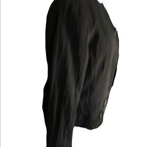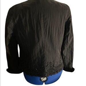 COLDWATER CREEK, Women’s Black Sequined, Jacket, Size 14,buttons down the front. Intricate detailing and sequins at the collar, and the bottom of the jacket. Cuffed long Sleeves with button and snap Closure. Shell: 78% cotton, 22% nylon, Lining: 100% polyester. Dry clean. Wedding attire, cocktail jacket, parties, embellished. Will go from dressy to casual. Would also look great with jeans.