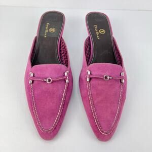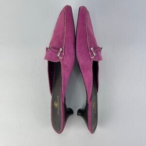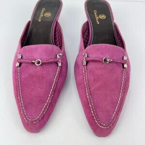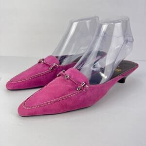 COLE HAAN 8AA Pink Suede Leather Kitten Heel Slides w/Horse Bit Detail