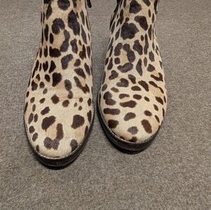 COLE HAAN (9.5 B) Real Fur Leopard Print Ankle Boots Grand OS Buckle