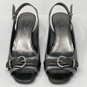 COLE HAAN Air Silver Slingback Open Toe Buckle Sandals Heels D36499 Size 7.5 B