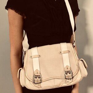 COLE HAAN Amanda Canvas Tan Gold Lizard Embossed Leather Bag Adjustable Strap