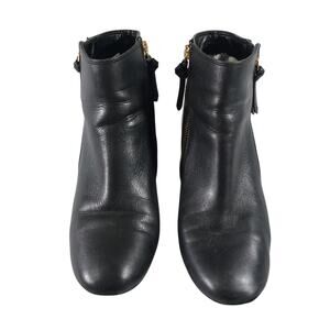 From Cole Haan come these black genuine leather ankle boots with gold hardware! Ultra chunky heel, inside and outside zippers! Adorably chic! 2.25" heel, 4" rise, 9" opening at top! Size 6.5B, *Note: some wear at the toes, esp the left, plz see pix! Thus the super low price! Otherwise: Excellent! Superb EUC Condition! ***ABSOLUTELY GUARANTEED CONDITION: EUC MINTY-EXCELLENT TO LIKE NEW, by Lily @HauteClub!*. Offers welcomed!***