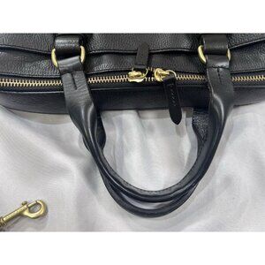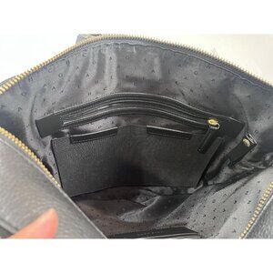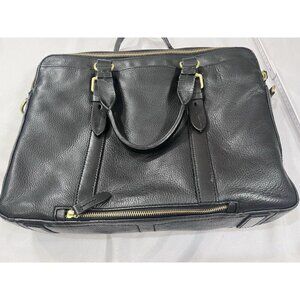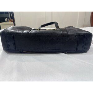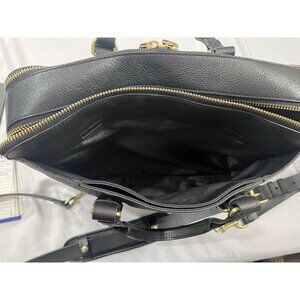 The Cole Haan Black Matthews Atache Bag is a stylish and practical large-sized briefcase/document case suitable for travel, casual, and business occasions. Accommodates a 13 inch laptop .Made from leather with a solid black color, this bag features a zip and magnetic closure, shoulder strap handle style, and a fabric lining. With inner dividers, pockets, a mobile phone pocket, and an RFID blocking feature, this designer bag offers both functionality and security for the modern man or woman on the go. The sleek black design with brass hardware and a 21-inch strap drop makes it a versatile and timeless accessory for any city or college-inspired outfit. MSRP $450