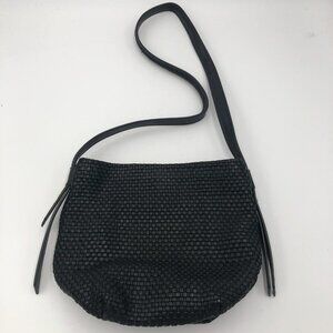 COLE HAAN Bethany Weave Bucket Hobo Black Leather Bag