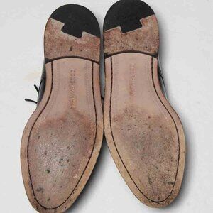 Very good condition with no gashes in the leather. Clean on the inside, hard bottom leather soles with lots of wear left and no heel wear-down. Some minor scuffs that come with normal wear and can be polished.