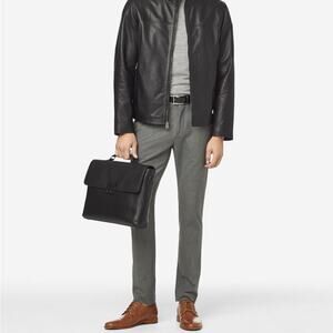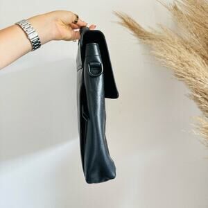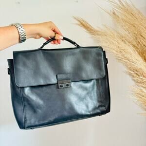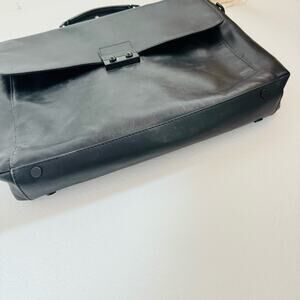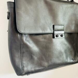COLE HAAN Black Leather Warner Briefcase Travel Bag Zipper Pocket Laptop Case
