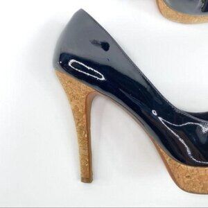 COLE HAAN Black Patent Leather Cork Platform Peep Toe Heels 9