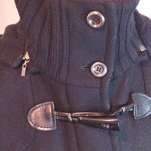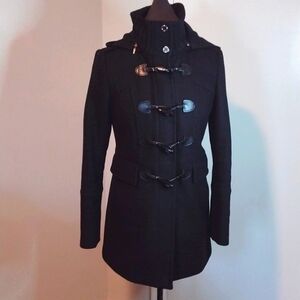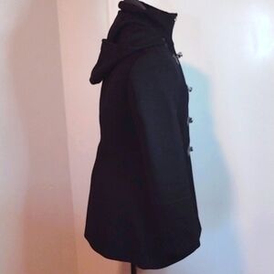 COLE HAAN Black Wool Winter Hooded Peacoat with toggle closure Size 8
