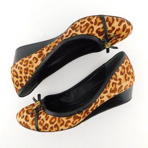 COLE HAAN Bow Tie Leopard Calf Hair Ballet Wedge Heels 10