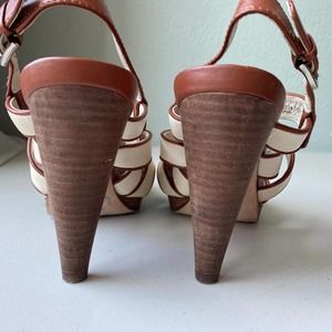 COLE HAAN Brown and White Leather Strappy Slingback Heels, Size 5.5B