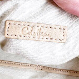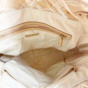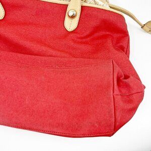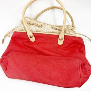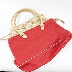 ✅ COLE HAAN CORAL AND TAN COATED CANVAS TOTE WITH DRAWSTRING CLOSURE