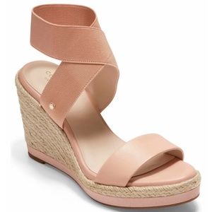 COLE HAAN Cloudfeel Nude Rose Espadrille Wedge Sandals Leather Platform Heels