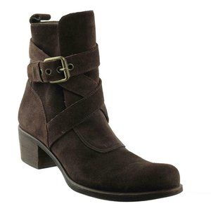 COLE HAAN G SERIES Ankle Boots Dark Brown Suede Sz. 9 B Buckled Chunky Heel