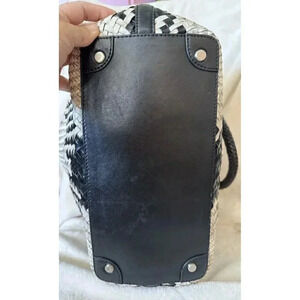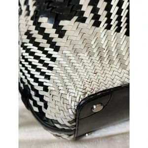 COLE HAAN Genevieve Woven Weave Black & White Tote Shoulder Bag Braided Handles