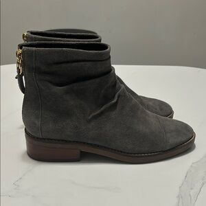 Step out in style with these chic gray suede ankle boots. Perfect for any occasion, they offer both comfort and elegance.