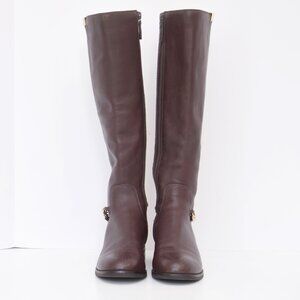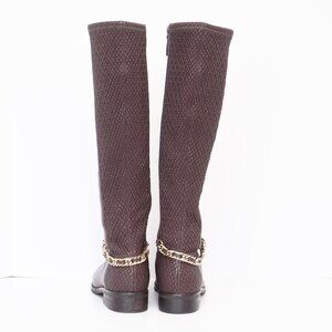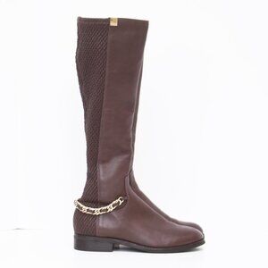 COLE HAAN IDINA Brown Tumbled Leather Stretch Tall Boots w/Gold Chain Sz 6B