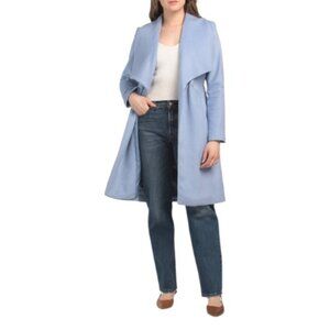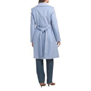 COLE HAAN Ice Blue Wool Blend Wrap Coat