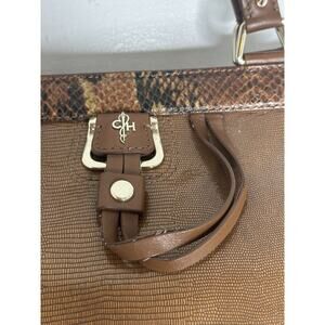 COLE HAAN Large Tan Leather Reptile Trip Handel Satchel Doctors Bag