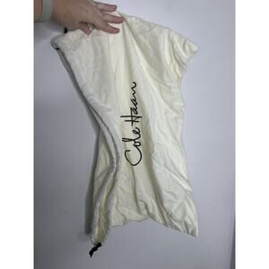 The Cole Haan Large Tan Leather Reptile Trip Handle Satchel is a stylish and versatile handbag designed for everyday use. Made from high-quality leather with embossed accents, this rectangular shaped bag features a magnetic closure and double brown leather handles. The spacious interior is lined with fabric and includes inner pockets for organization. With a solid brown exterior color and bronze hardware accents, this satchel/top handle bag adds a touch of sophistication to any casual outfit. Perfect for women on the go, this Cole Haan handbag combines practicality with a trendy design aesthetic.