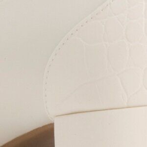 grained finish, stacked heel, lightly cushioned footbed, croc embossed detail