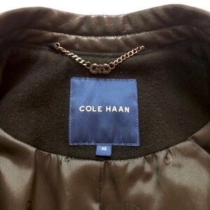 COLE HAAN Leather and Wool Bomber Jacket Black
