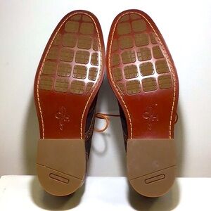 Make a statement in this updated Classic Oxford with a colorful twist from Cole Haan. Rich brown leather and suede teams up with orange sole stitching and laces. NEW, NEVER WORN! Stacked Leather soles and heels with Nike Air technology. US size 9