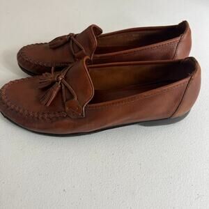 COLE HAAN Loafer Shoes Women's 9.5 B Brown Ferrah Leather Tassel Moc Toe Casual