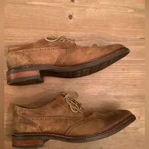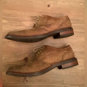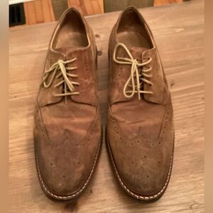 COLE HAAN MENS 10.5 M COGNAC BROWN SUEDE WINGTIP DRESS OXFORD LACE UP SHOE